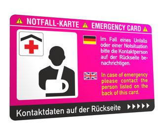 Notfallkarte im Scheckkartenformat für die Brieftasche. Infos für Polizei oder Rettungsdienste
